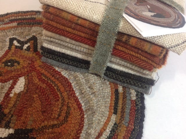 There are several options for you to select as you purchase this item. Choose a backing fabric of either cotton monks cloth or primitive linen and also choose if you want the wool in your kit to come uncut, or, cut in #8 (1/4" wide) strips.