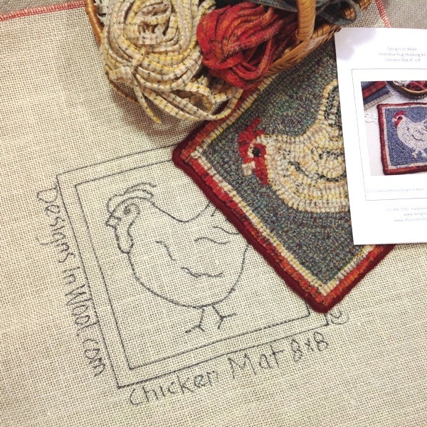 This listing is for the KIT to hook my design "Chicken Mat". The design measures 8" x 8".
