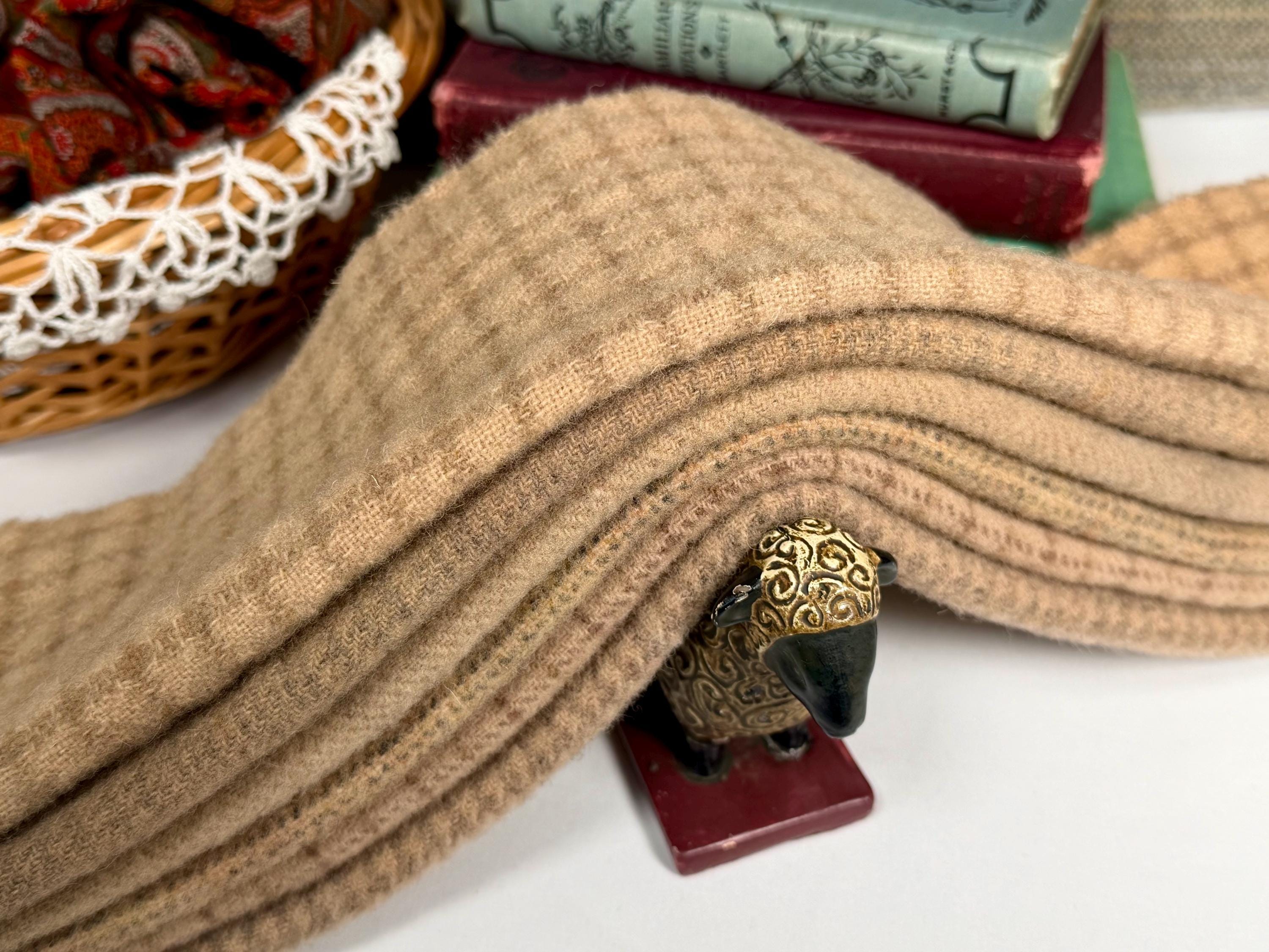 These wool textures are medium in weight and perfect for primitive rug hooking (cuts #8 and wider) and great for applique and sewing projects. Use to make pincushions, table runners, make-dos, candle mats, purses, sewing kits, quilt tops and more.