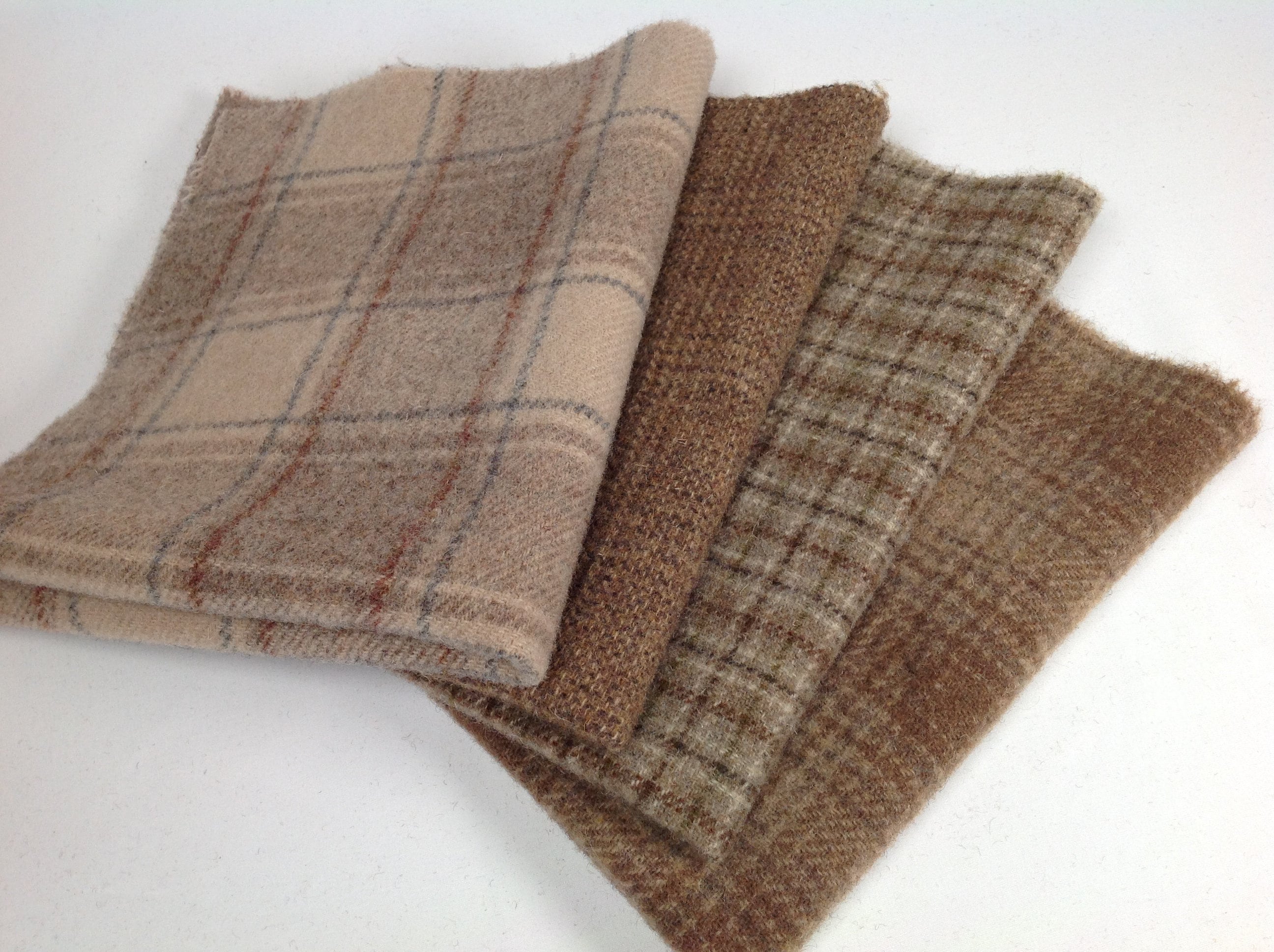 This listing includes 4) fat eighths of 100% milled dyed wool fabric. A wonderful mix of light to medium browns, perfect for hooking squirrels, chipmunks, ground cover, tree bark, mountains, rocks and hills, animals and backgrounds. Each piece measures approximately 14" x 16".